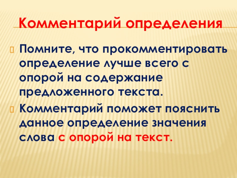 Помните, что прокомментировать определение лучше всего с опорой на содержание