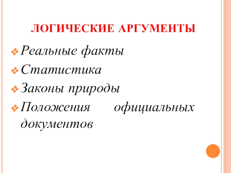 Слайд 16ЛОГИЧЕСКИЕ АРГУМЕНТЫ
