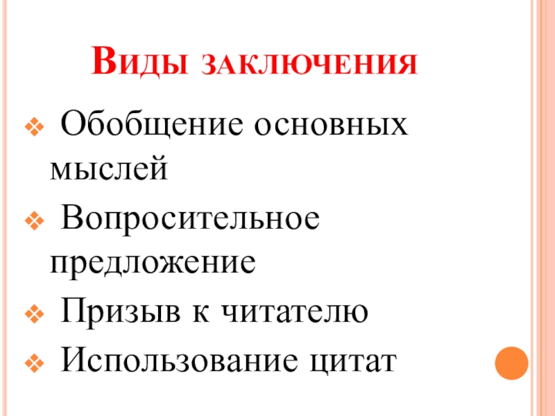 Слайд 19Виды заключения