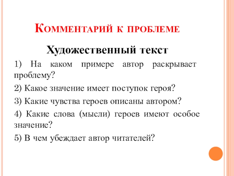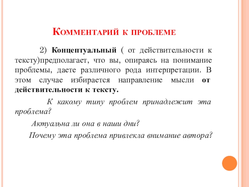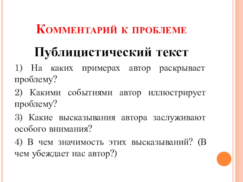 предполагает объяснение текста, следование за автором в раскрытии проблемы.