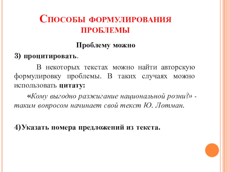 найти авторскую формулировку проблемы. В таких случаях можно использовать цитату: