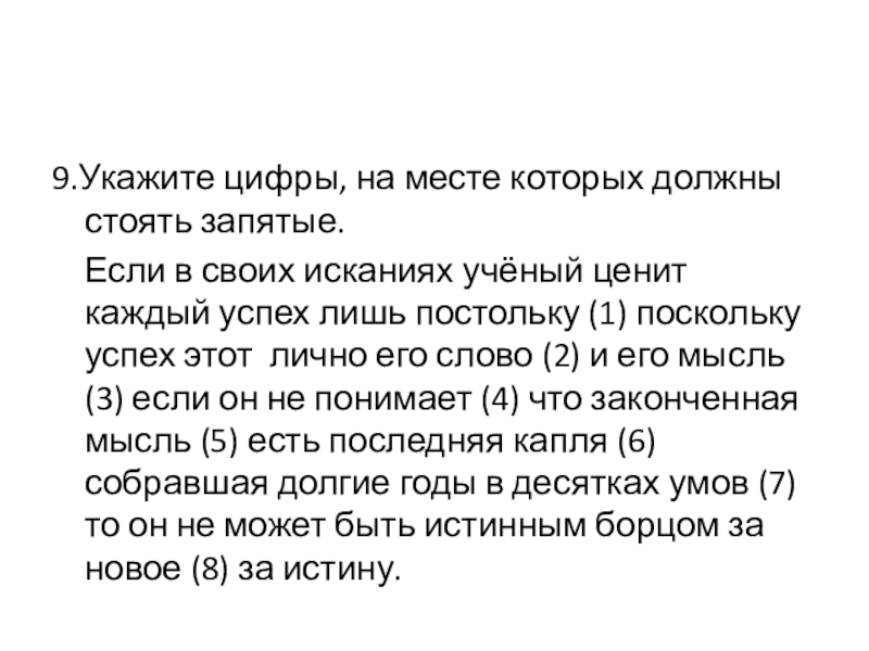 Слайд 87. Укажите цифры, на месте которых должны стоять запятые.