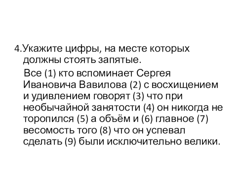 кто вспоминает Сергея Ивановича Вавилова (2) с восхищением и удивлением говорят (3) что при необычайной занятости (4) он никогда не торопился (5) а объём и (6) главное (7) весомость того (8) что он успевал сделать (9) были исключительно велики.
