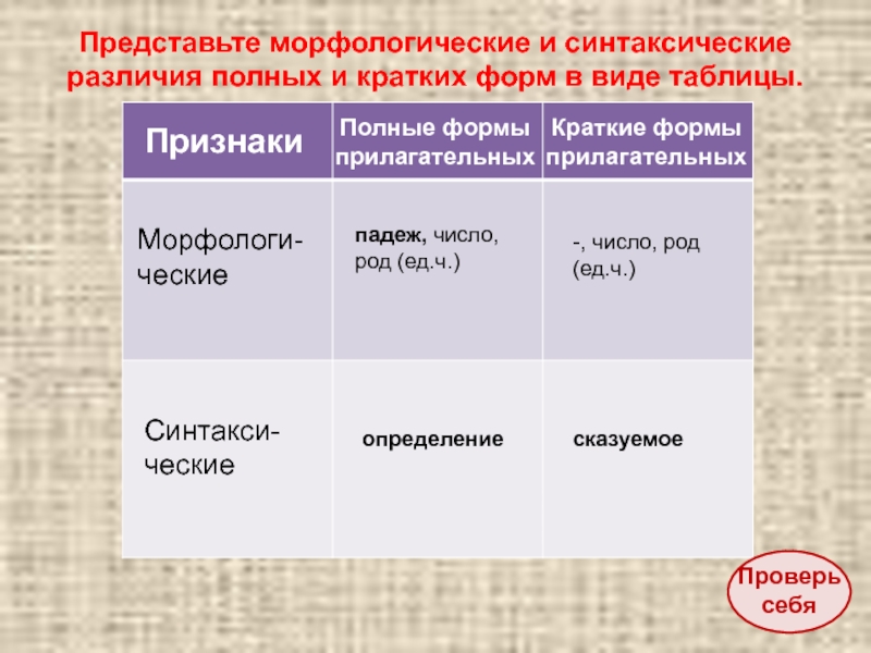 Как ты думаешь, какие формы являются полными, а какие – краткими?