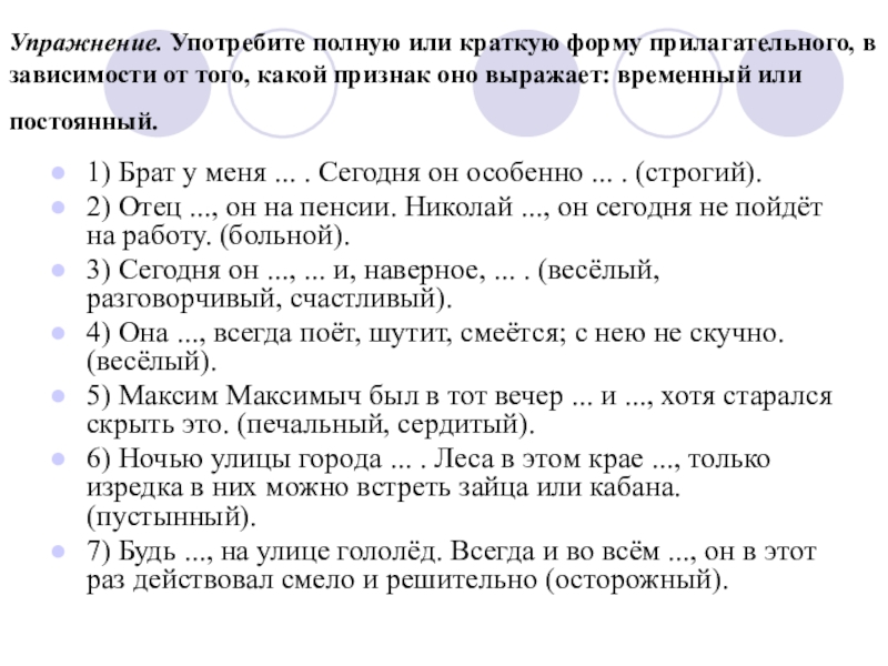 Слайд 11Упражнение. Употребите полную или краткую форму прилагательного, в зависимости от того, какой