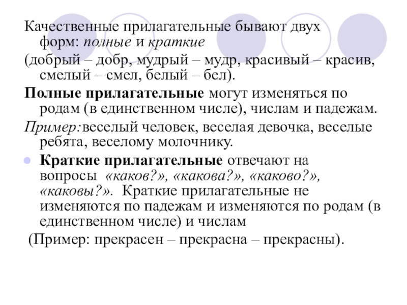 Слайд 3Качественные прилагательные бывают двух форм: полные и краткие