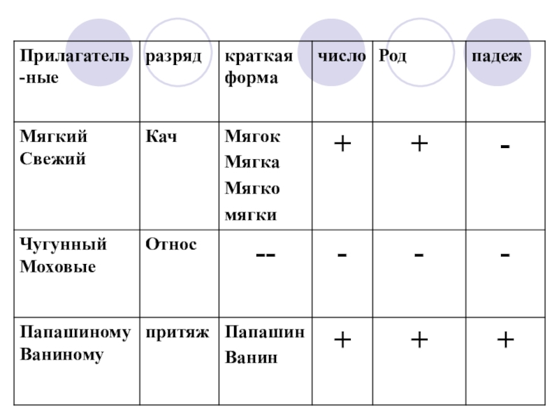 Полные прилагательные могут изменяться по родам (в единственном числе), числам и падежам.