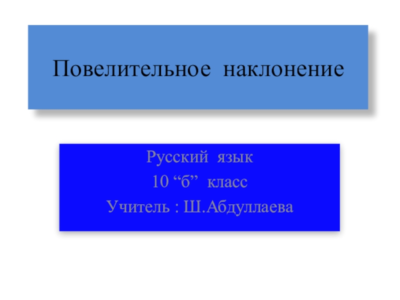 Повелительное наклонениеРусский язык 10 “б” классУчитель : Ш.Абдуллаева