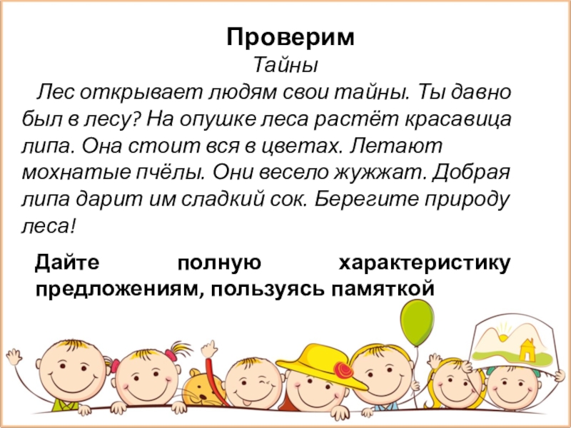 Дайте полную характеристику предложениям, пользуясь памяткой