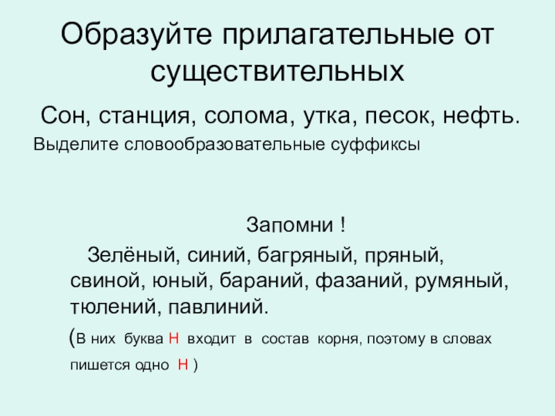 Слайд 7Образуйте прилагательные от существительных