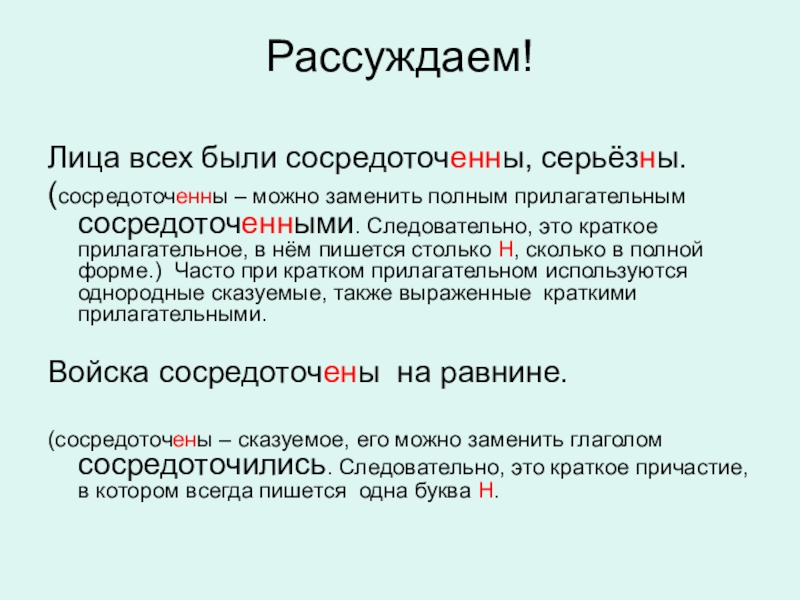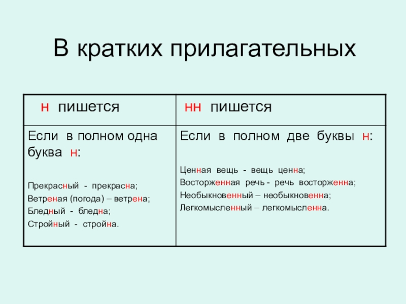Следовательно, это краткое прилагательное, в нём пишется столько Н, сколько в полной форме.) Часто при кратком прилагательном используются однородные сказуемые, также выраженные краткими прилагательными.