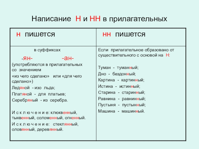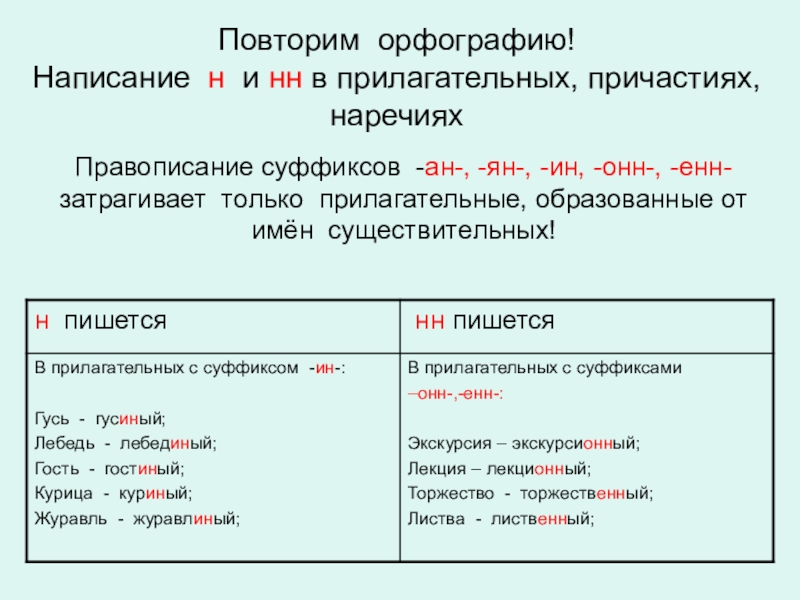 Написание н и нн в прилагательных, причастиях, наречиях