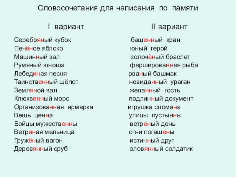 Слайд 13Словосочетания для написания по памяти