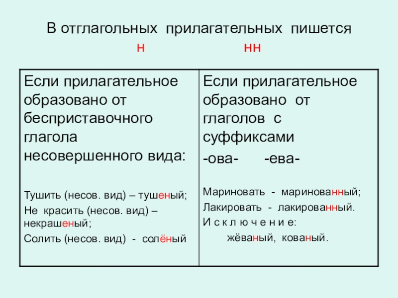 Слайд 8В отглагольных прилагательных пишется