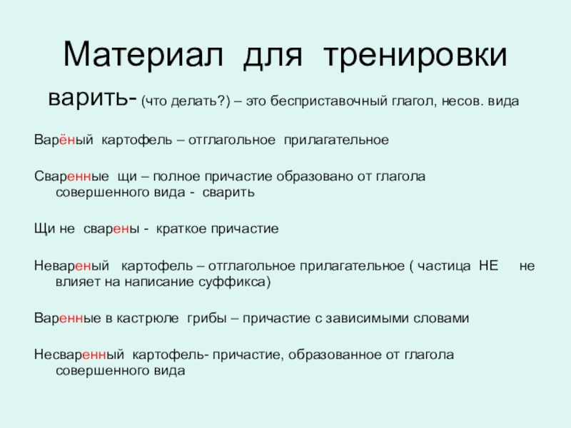 Варёный картофель – отглагольное прилагательное