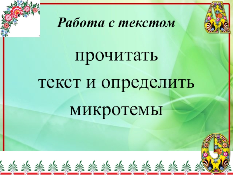 Слайд 12Домашнее задание: Определить микротемы предложенного текста. Написать сжатое изложение.