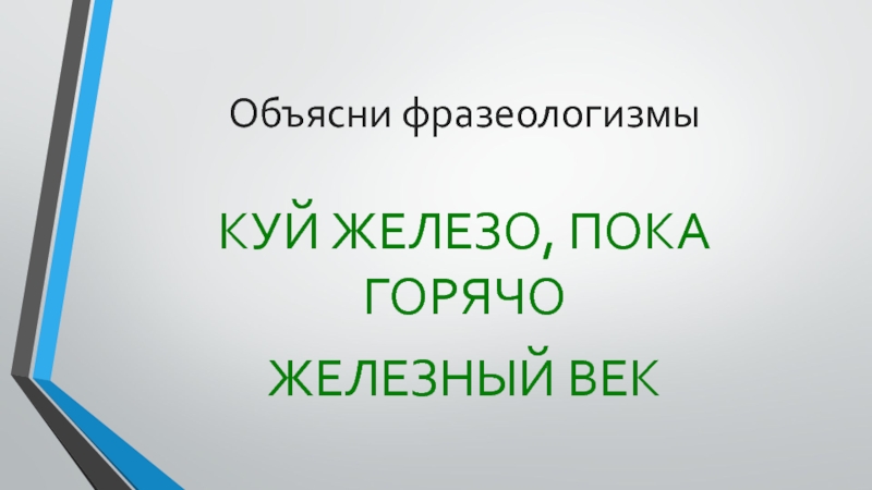 Объясни фразеологизмыКУЙ ЖЕЛЕЗО, ПОКА ГОРЯЧО ЖЕЛЕЗНЫЙ ВЕК