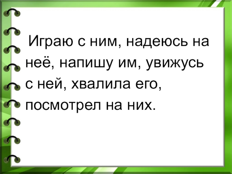 Играю с ним, надеюсь на неё, напишу им, увижусь с ней, хвалила его, посмотрел на них.