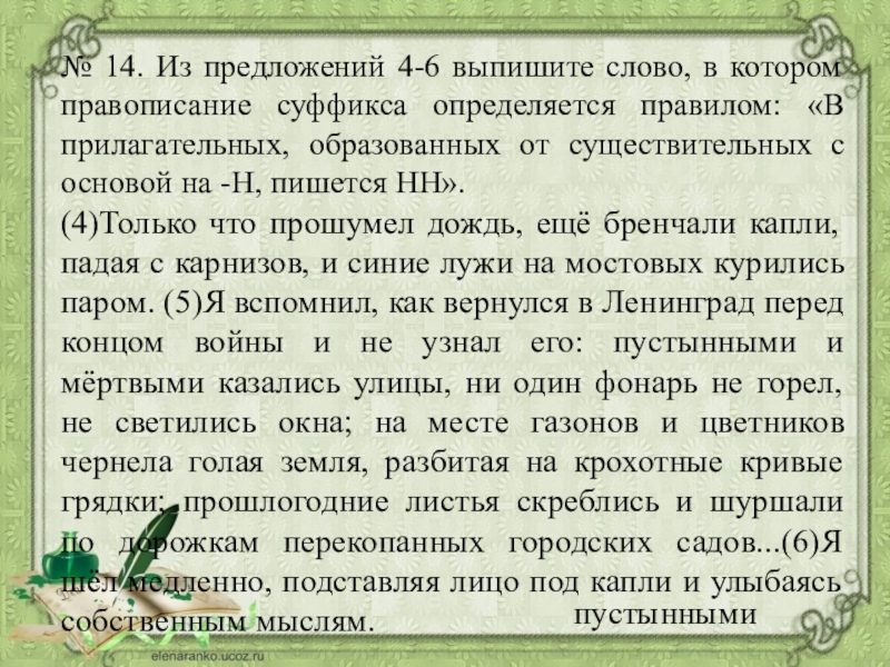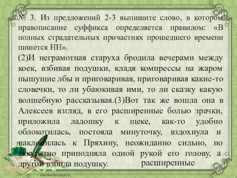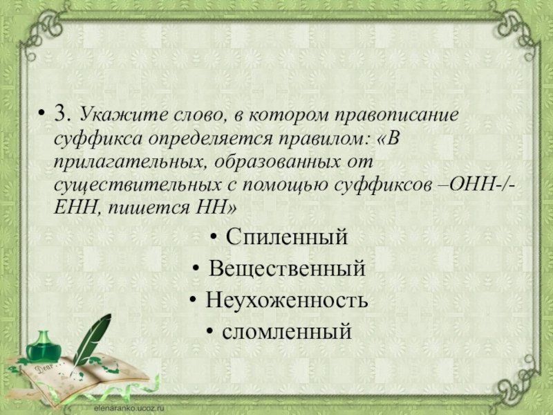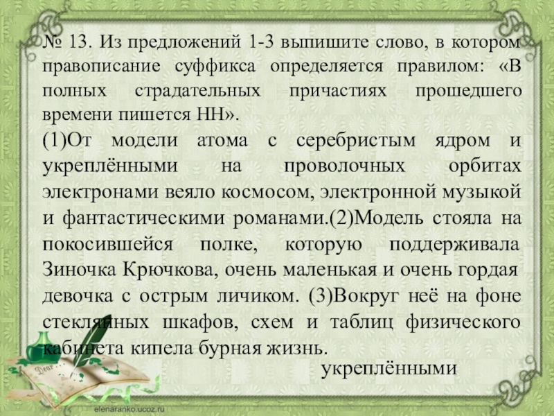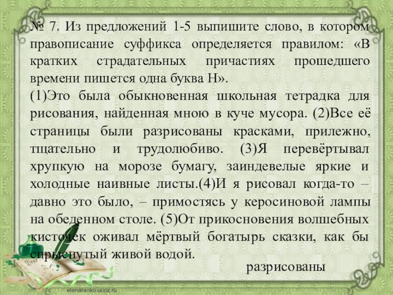 есть приставка (кроме НЕ): сломанный прутик; просушенные вещи, прочитанное письмо, покрашенные стены
