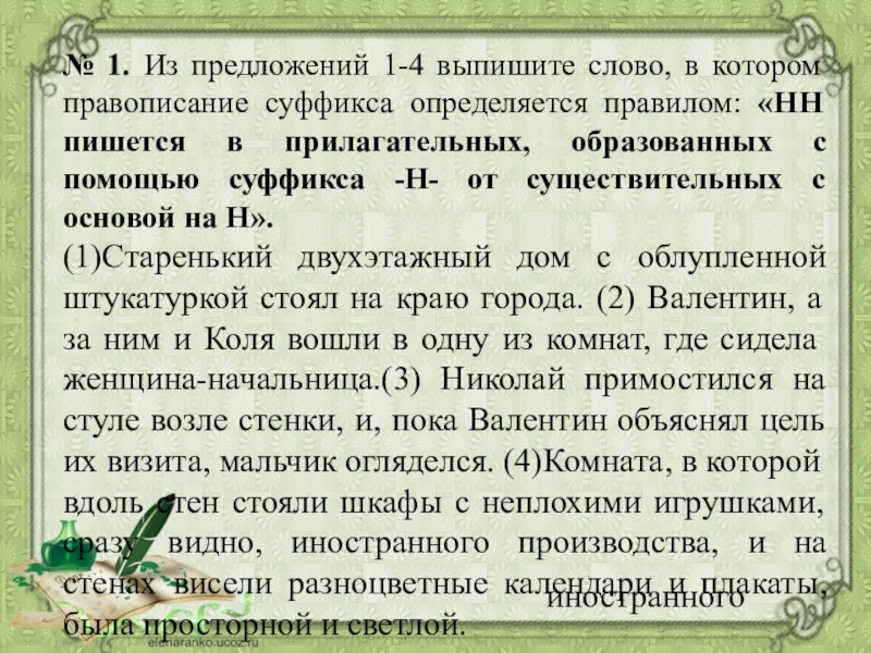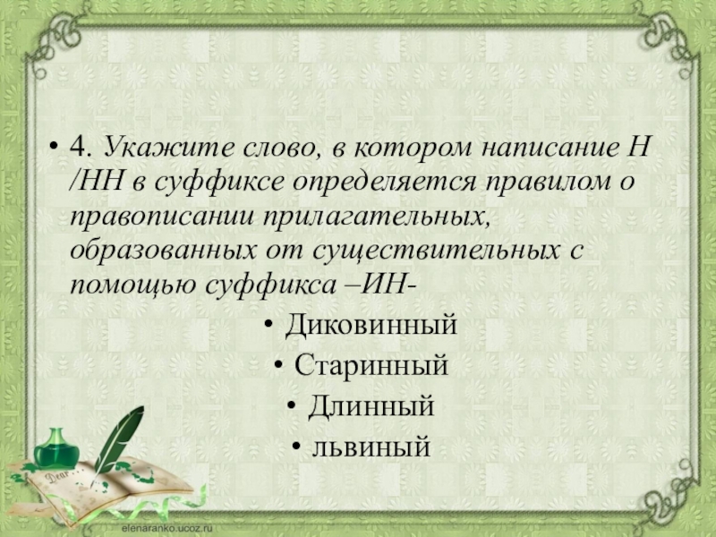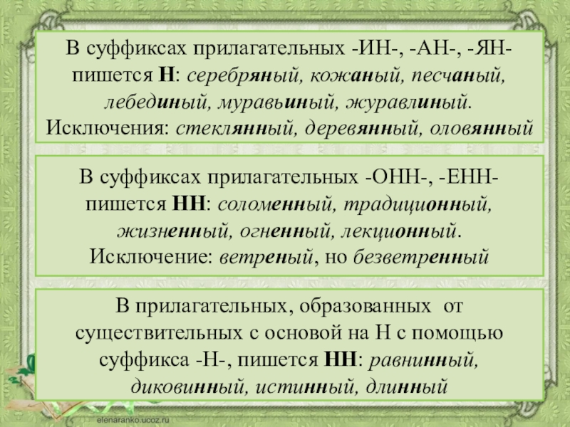 В прилагательных, образованных от существительных с основой на Н с помощью суффикса -Н-, пишется НН: равнинный, диковинный, истинный, длинный