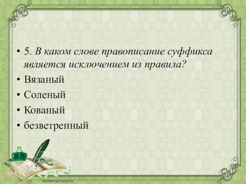 есть суффикс ОВА, ЁВА: маринованный, линованный, организованный, корчёванный, исключение: кованый, жёваный