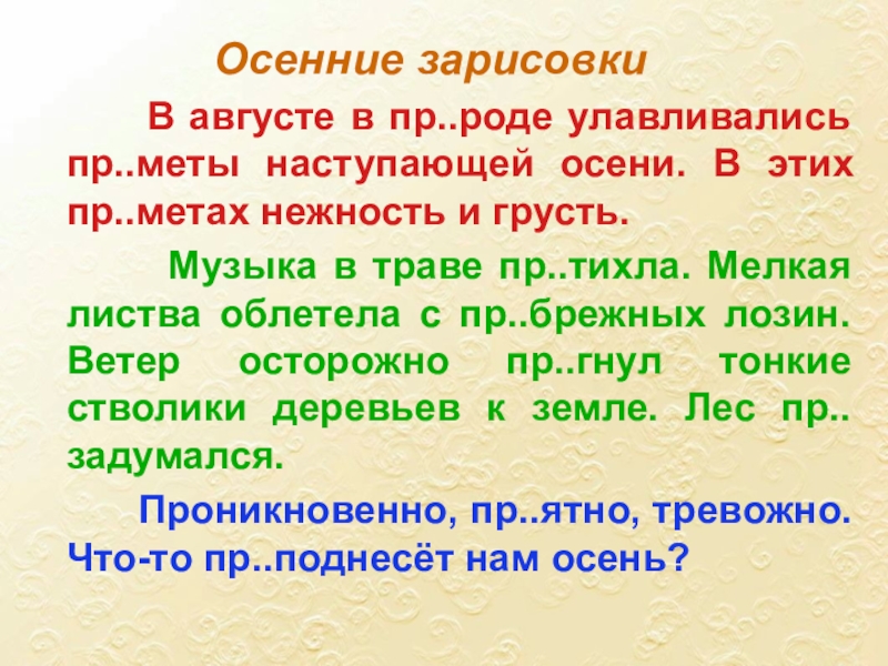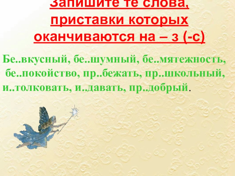бе..покойство, пр..бежать, пр..школьный,