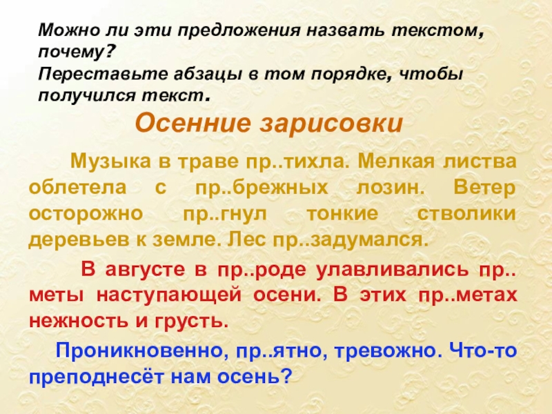 Переставьте абзацы в том порядке, чтобы получился текст.
