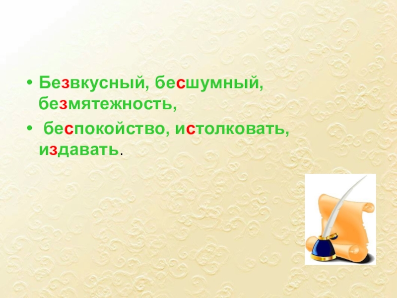 Бе..вкусный, бе..шумный, бе..мятежность,