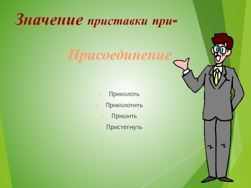 Значение приставки при-ПрисоединениеПриколотьПриколотитьПришитьПристегнуть