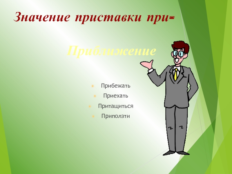 Значение приставки при-ПриближениеПрибежатьПриехатьПритащитьсяПриползти