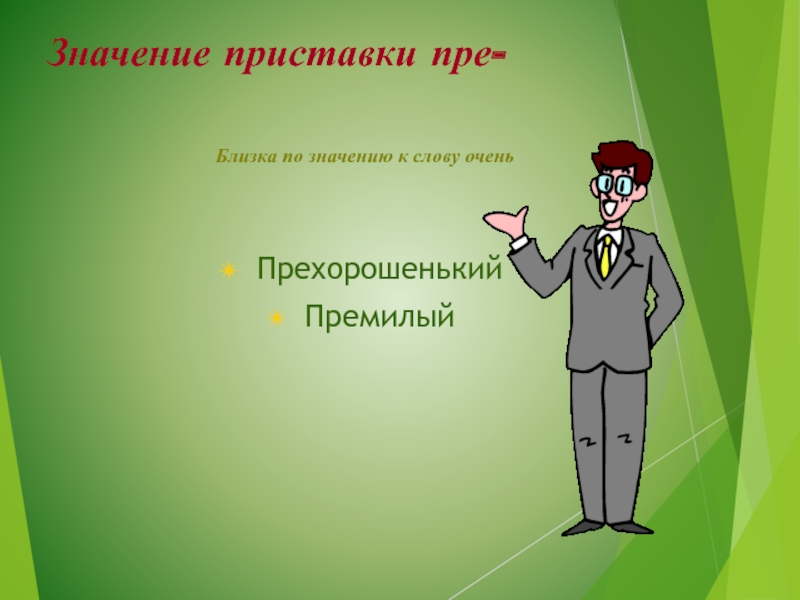 Значение приставки пре-Близка по значению к слову оченьПрехорошенькийПремилый