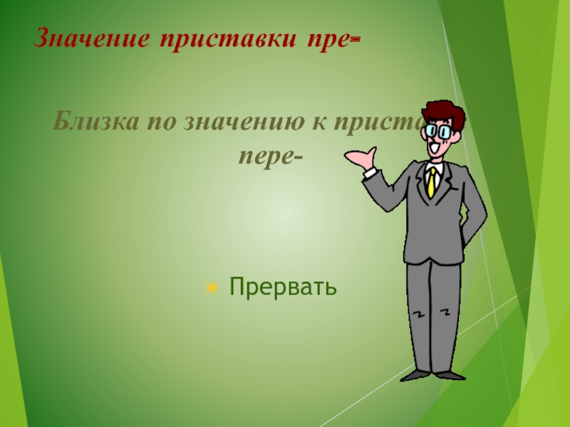 Значение приставки пре-Близка по значению к приставке пере-Прервать
