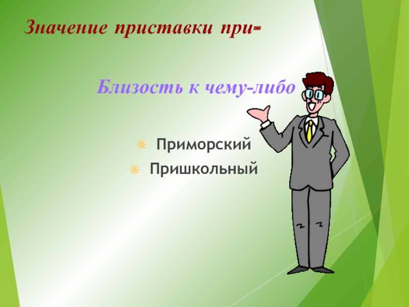 Значение приставки при-Близость к чему-либоПриморскийПришкольный