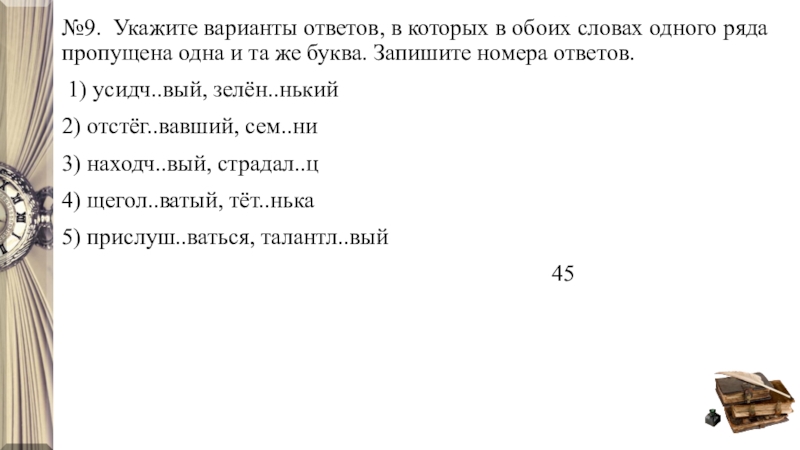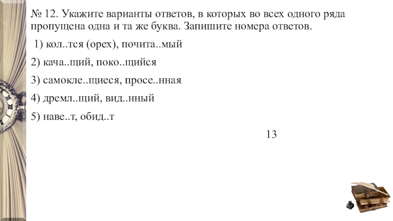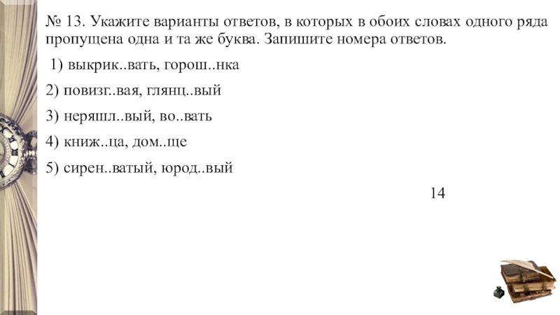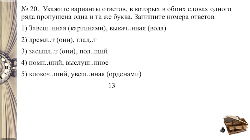 Слайд 24№ 13. Укажите варианты ответов, в которых в обоих словах одного