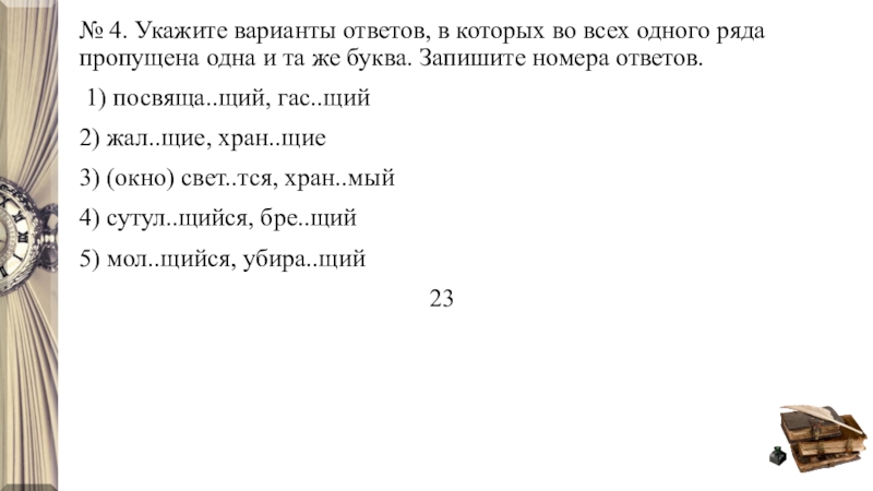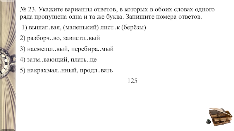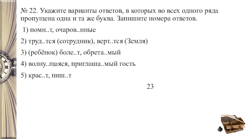 Слайд 34№ 23. Укажите варианты ответов, в которых в обоих словах одного