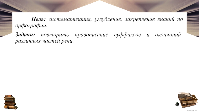 Слайд 2 Цель: систематизация, углубление, закрепление знаний по орфографии.