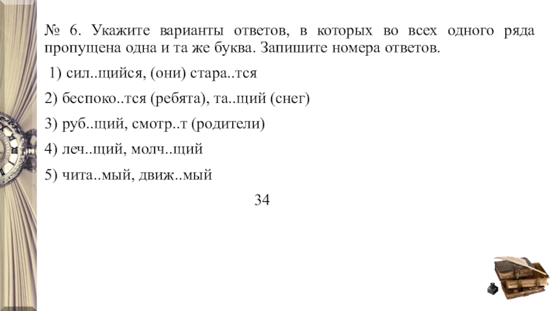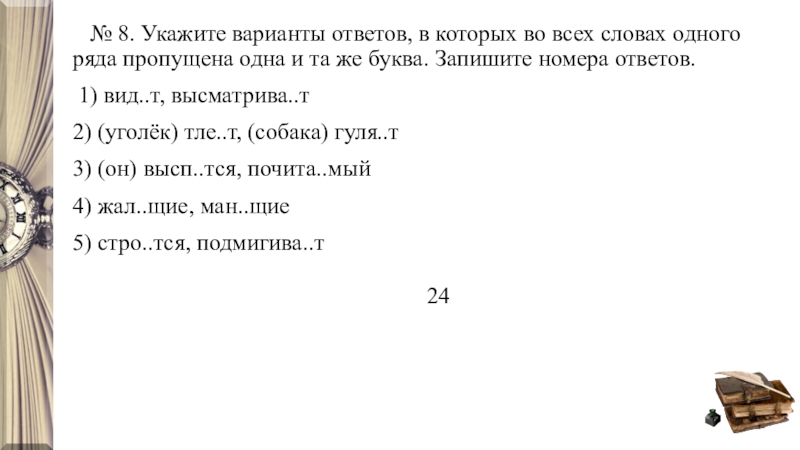 Слайд 35№ 24. Укажите варианты ответов, в которых во всех одного ряда