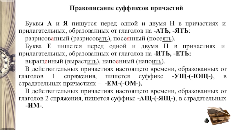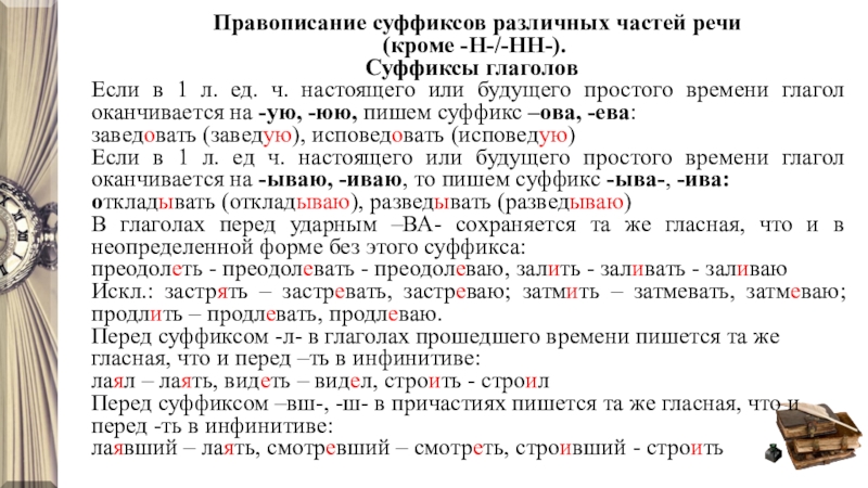 Орфография. Правописание суффиксов различных частей речи (кроме -Н-/-НН-). Правописание личных окончаний глаголов и суффиксов причастий
