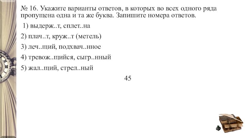 Слайд 27№ 16. Укажите варианты ответов, в которых во всех одного ряда