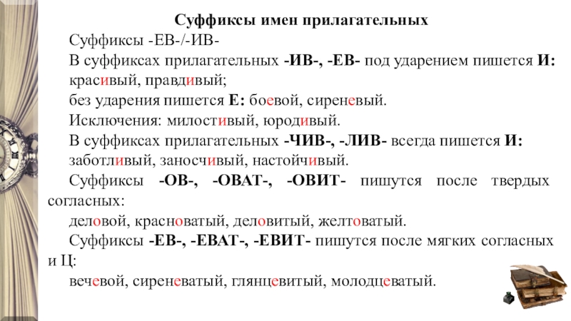 В суффиксах прилагательных -ИВ-, -ЕВ- под ударением пишется