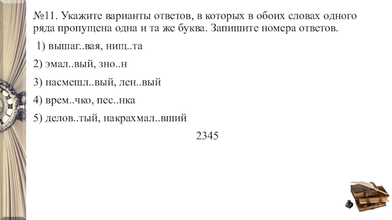 Слайд 22№11. Укажите варианты ответов, в которых в обоих словах одного ряда
