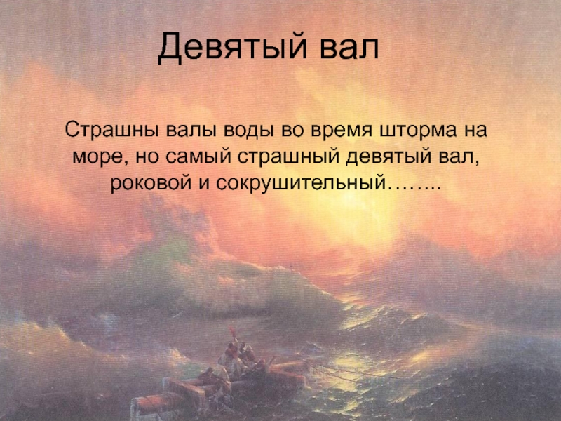 страшный девятый вал, роковой и сокрушительный……..