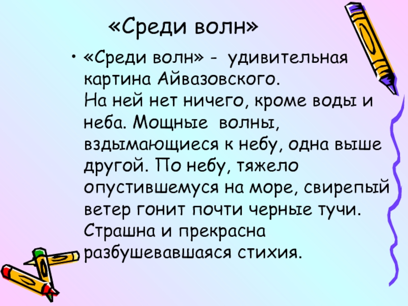 Слайд 9«Среди волн»