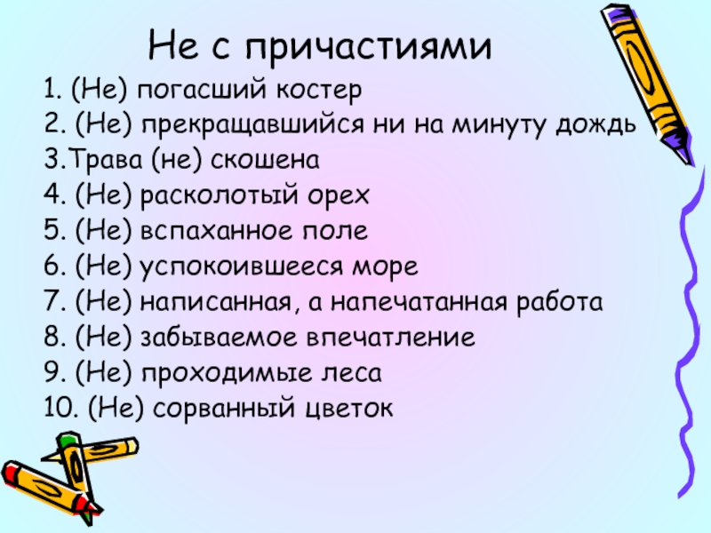 Слайд 16Не с причастиями