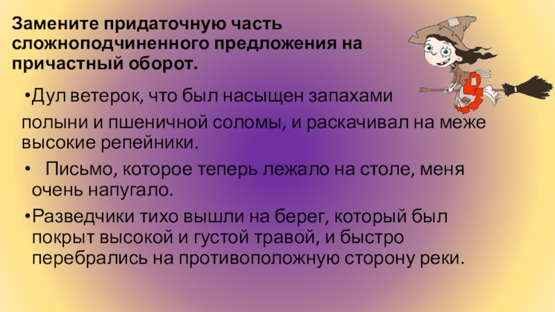 Слайд 3Замените придаточную часть сложноподчиненного предложения на причастный оборот.