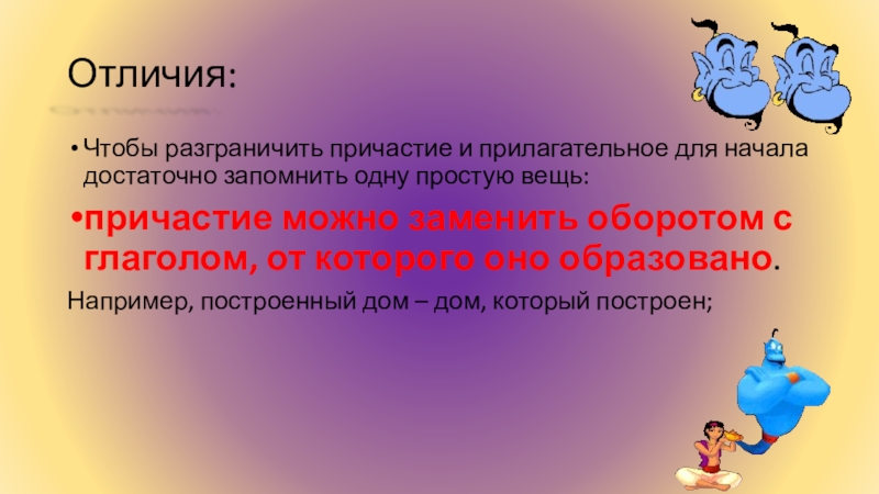 Чтобы разграничить причастие и прилагательное для начала достаточно запомнить одну простую