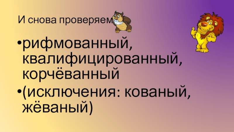 И снова проверяем!рифмованный, квалифицированный, корчёванный (исключения: кованый, жёваный)