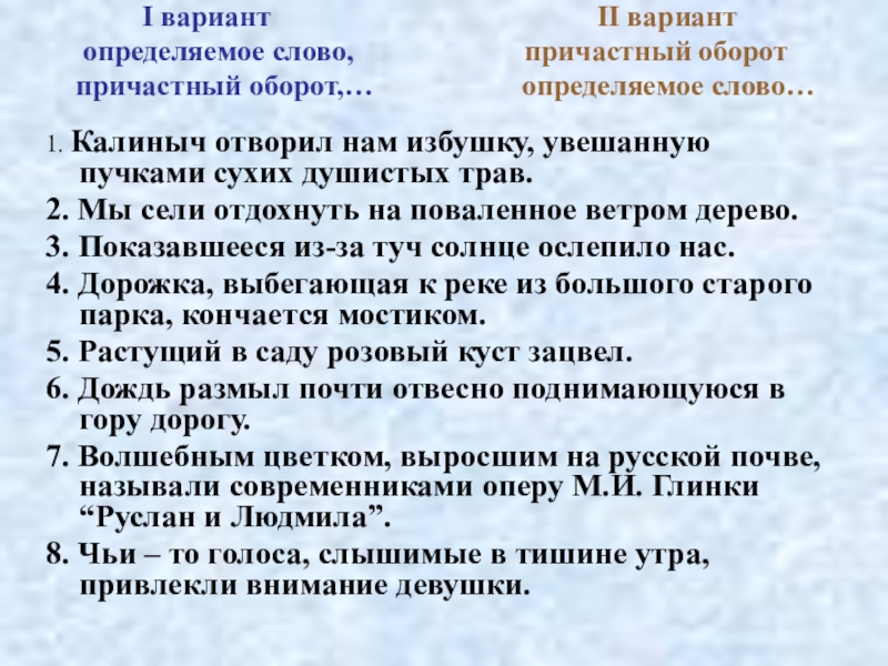 8. Чьи – то голоса, слышимые в тишине утра, привлекли внимание девушки.