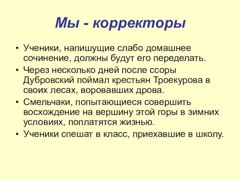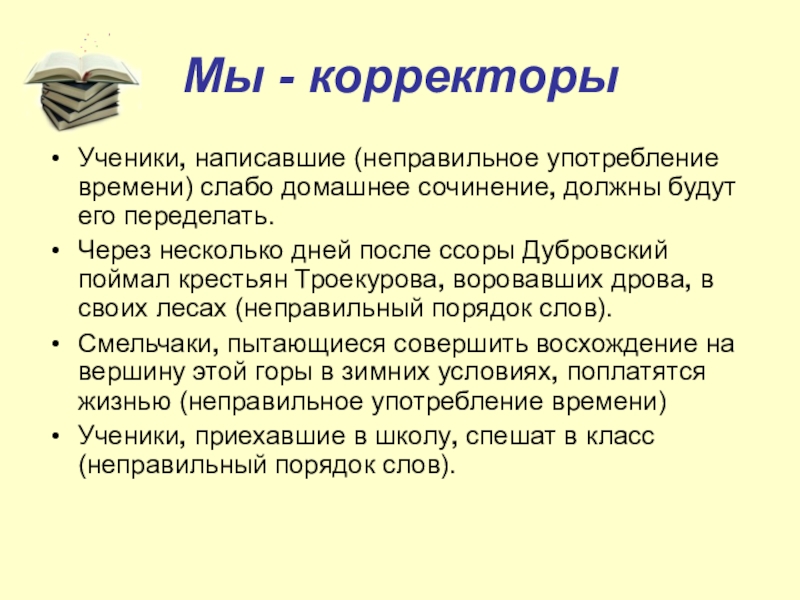 Ученики, написавшие (неправильное употребление времени) слабо домашнее сочинение, должны