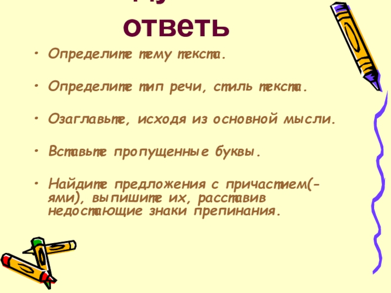 Слайд 12Расставьте недостающие знаки препинания, обозначьте причастные обороты
